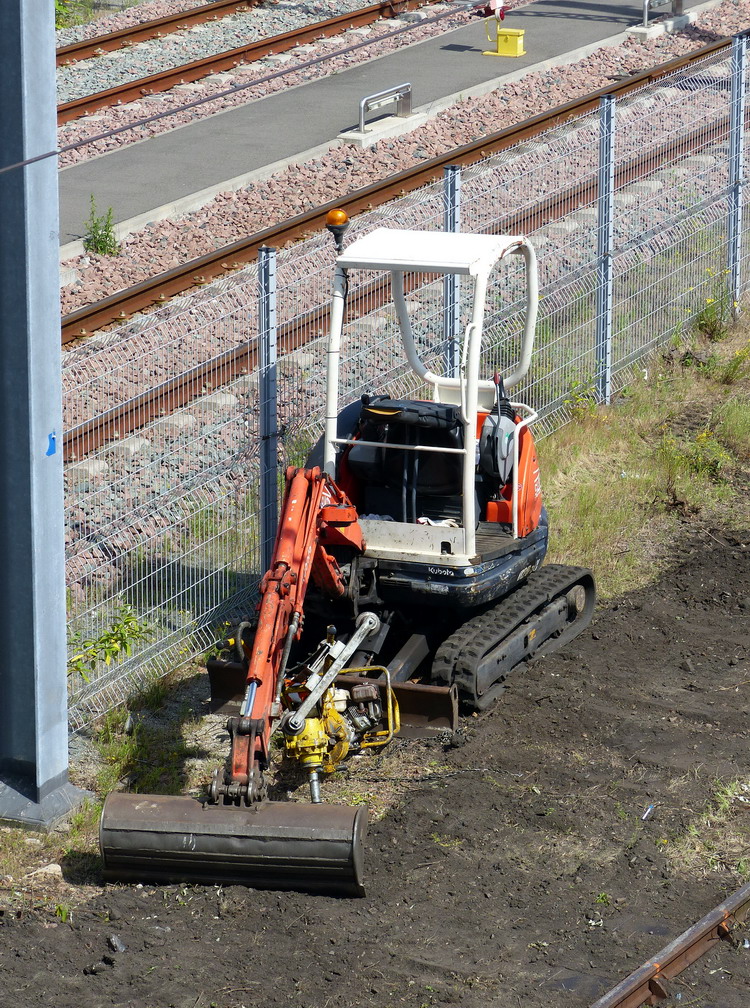 Voici une petite pelleteuse à chenilles Kubota du Type U20-3a pour CLMTP pour la reprise des travaux sur une voie