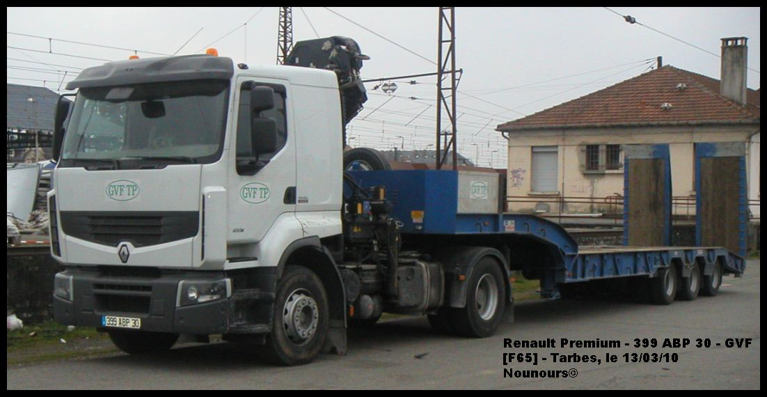 Voici le Renault Premium 399 ABP 30 avec sa remorque porte engins.