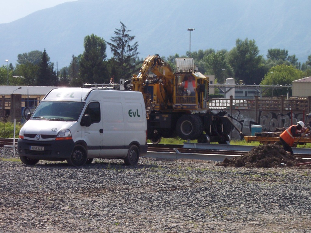- véhicules d'EVL Peugeot Partner DX-456-RP (77) en gare de Mézières-sur-Oise le 09 juillet 2018