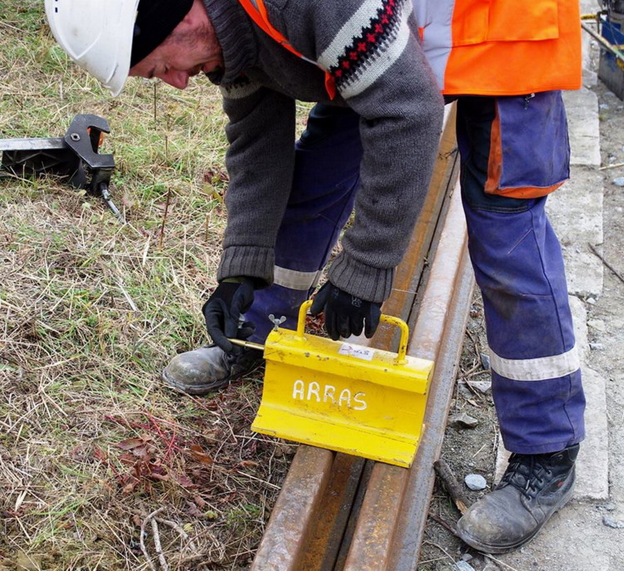 Coupons de rail témoin avec thermomètre sur la base de travaux de Laon (02) le 17 juillet 2017