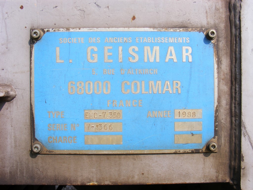 Voici EMC 350 BR de Strasbourg ex EMC ST 7366 avec son n° UIC et avec la date de son agrément dépassé 07-08-2013/2015