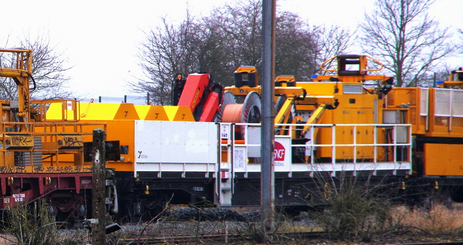 Voici la rame mécanisée d'entretien et de secours des caténaires de Paris Nord - Point d'attache Paris Nord Chapelle Inter