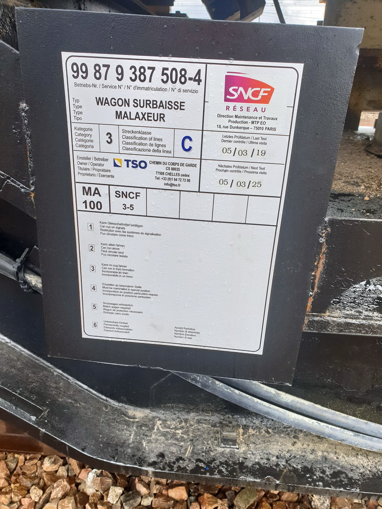 Wagon surbaissé Malaxeur ciment pour la rame béton de TSO 99 87 9 387 508-4 de 23 m et d'une Tare de 56 T