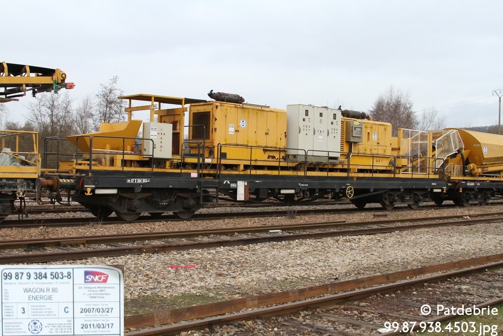 Il s'agit de certains éléments du train béton TSO qui à servit pour le betonnage des voies du Tunnel sous la Manche coté anglais. Il était composé d'environ 20 wagons (ciments, énergie, malaxeur, agrégats, eau). Depuis il a été modifié pour effectuer de la pose de caténaires. L'on retrouve une dizaine de ces wagons chez TSO Caténaires, le reste est encore estampié TSO et ils ont de "trés vieux agréments" car non utilisés depuis.