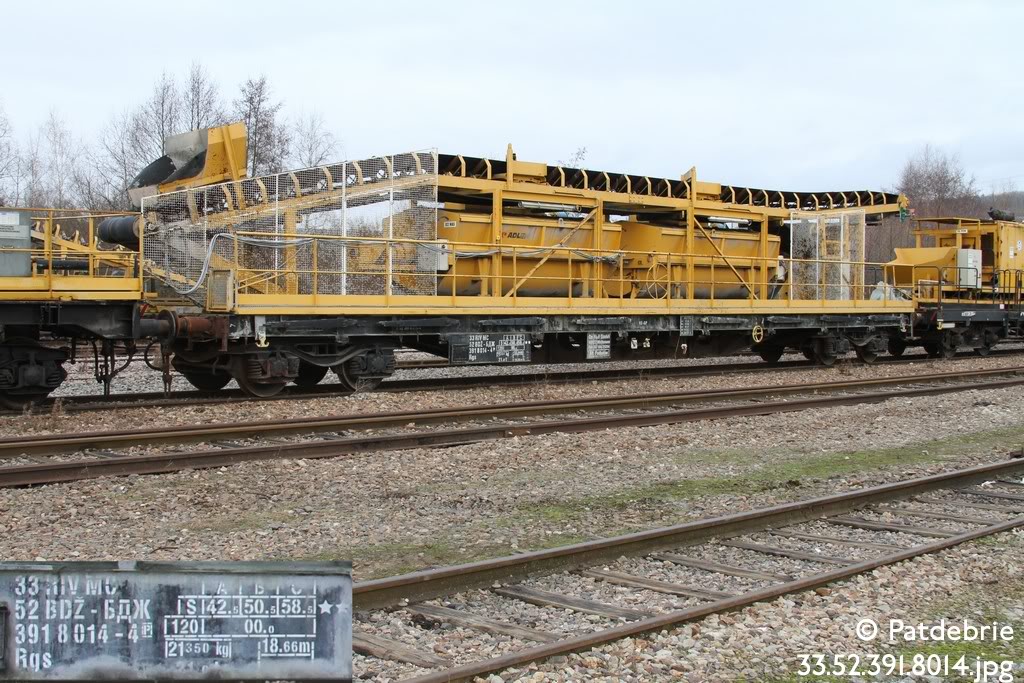 Voici une rame de bétonnage appartenant à TSO. La fonction de ce type de rame est de pouvoir préparer a la demande de grosses quantités de béton pour consolider des ouvrages d'art, tunnels, etc.... bref mélanger et pomper du béton dans des endroits inaccessibles aux camions-toupies. Ce type de matériel a son constructeur spécialiste :Adler à Crevecoeur le Grand.