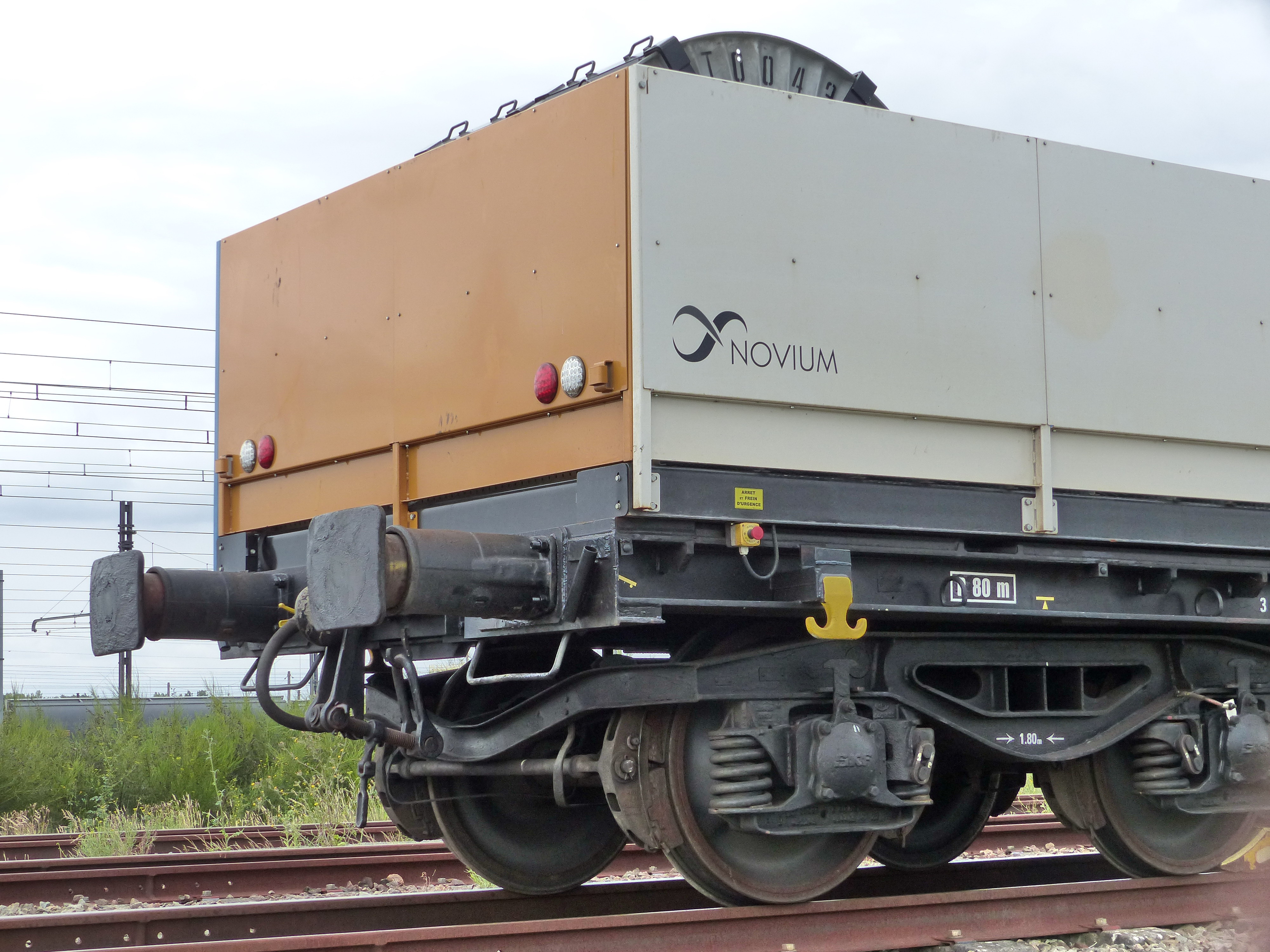 http://www.novium.fr/wagon-enrouleur-su ... atenaires/Wagon Enrouleur – Suite de Déroulage de Caténaires La suite de déroulage de caténaire est un ensemble de 2 wagons indissociables. Elle permet le remplacement des fils de contact. Fonctionne aussi bien pour caténaire 1,5kV continu que pour caténaire 25kV 50 Hz monophasé