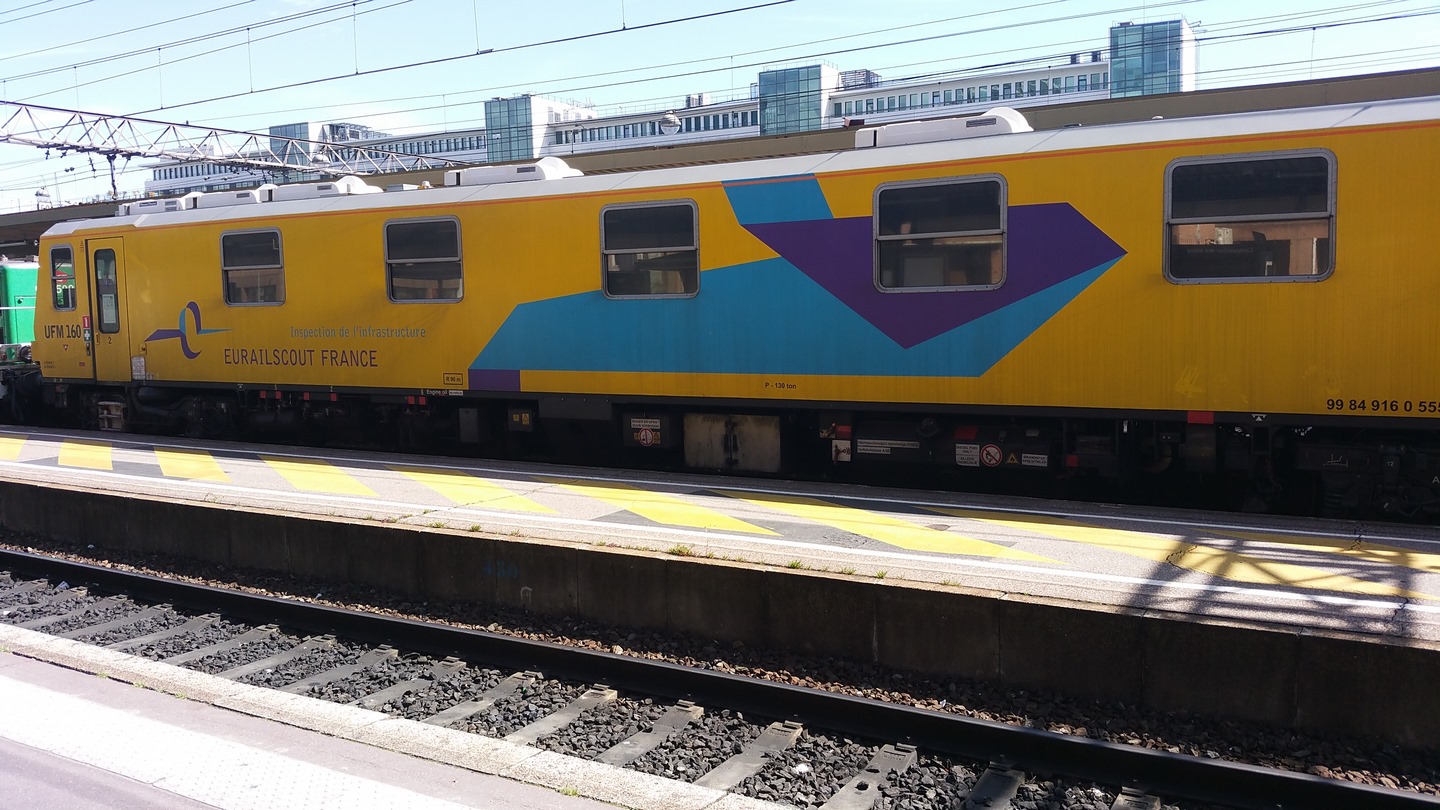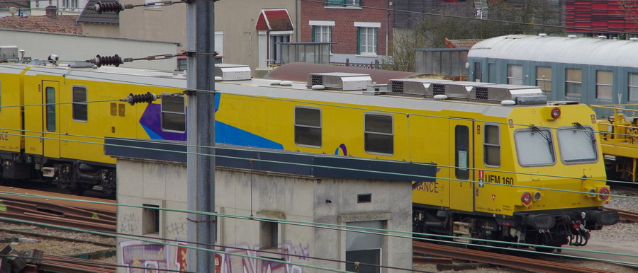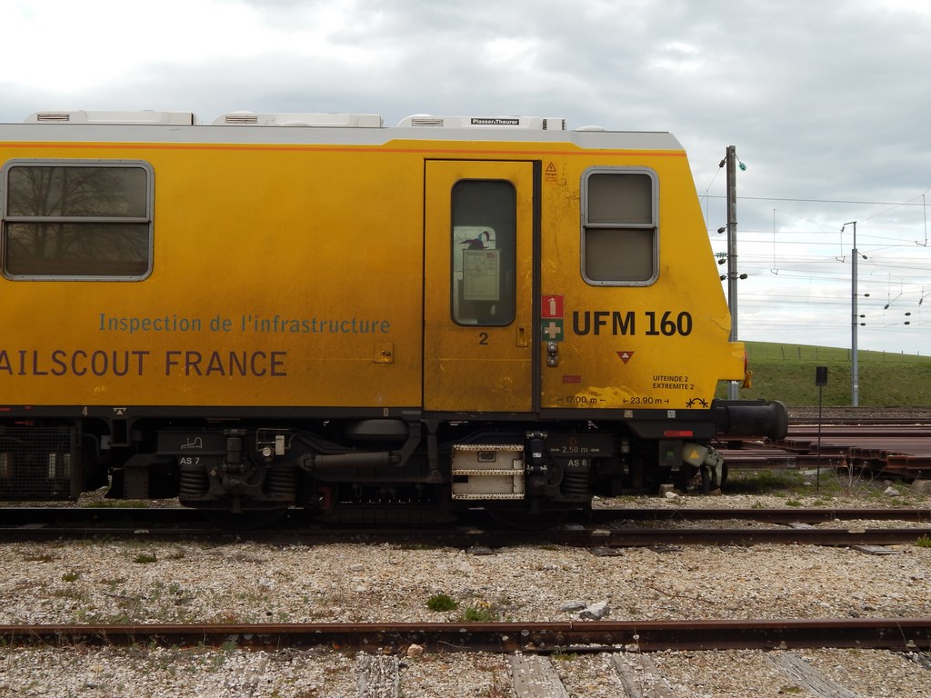 L'UFM 160 est en cours d'agrément sur le réseau ferroviaire national. C'est un engin construit par Plasser & Theurer (https://www.plassertheurer.com/fr/machi ... em160.html) pour Eurailscout initialement prévu pour utilisation aux Pays-bas. Il a dû être adapté pour circuler en France notamment en recevant les équipements de sécurité obligatoires et spécifiques à la France : DAAT, répétition des signaux, KVB...
