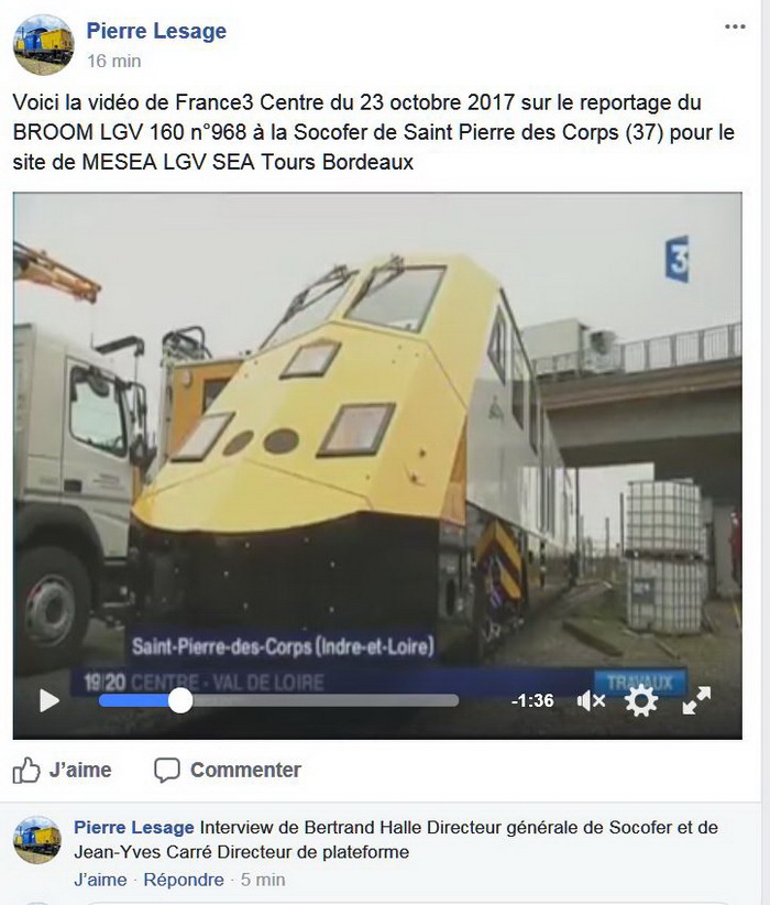 Re: Draisine BROOM LGV 160 n°968 MESEA - LGV SEA Tours Borde