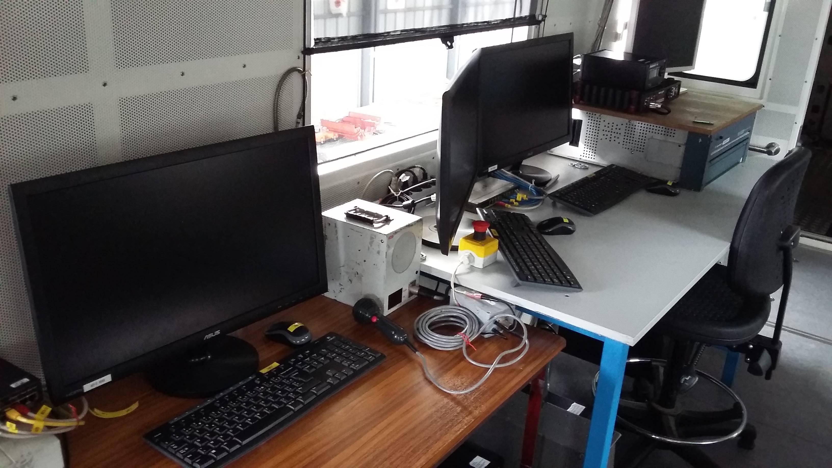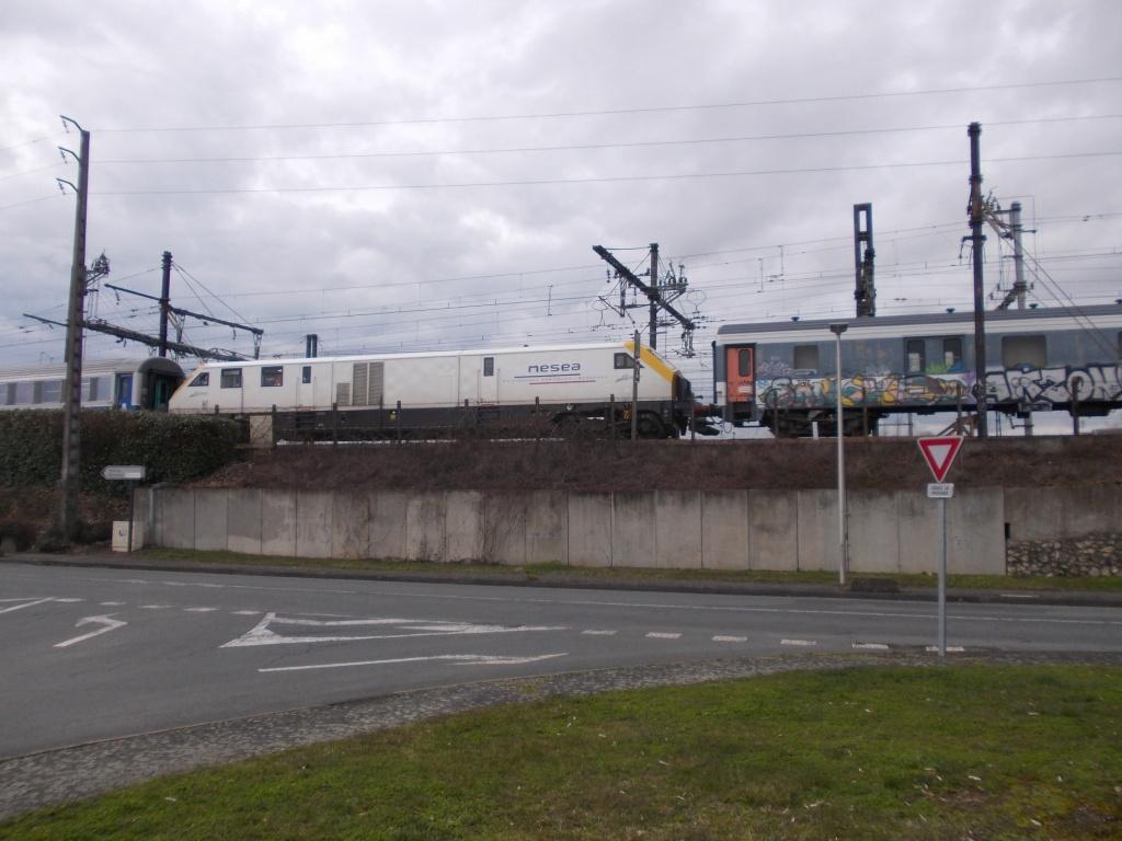 l'AEF a installé son lot de capteurs avec des câbles qui cheminent un peu partout. Pour les essais de freinage une installation qui crache de l'eau à savonneuse pour être dans les conditions d'adhérence rail-roue les plus défavorables.