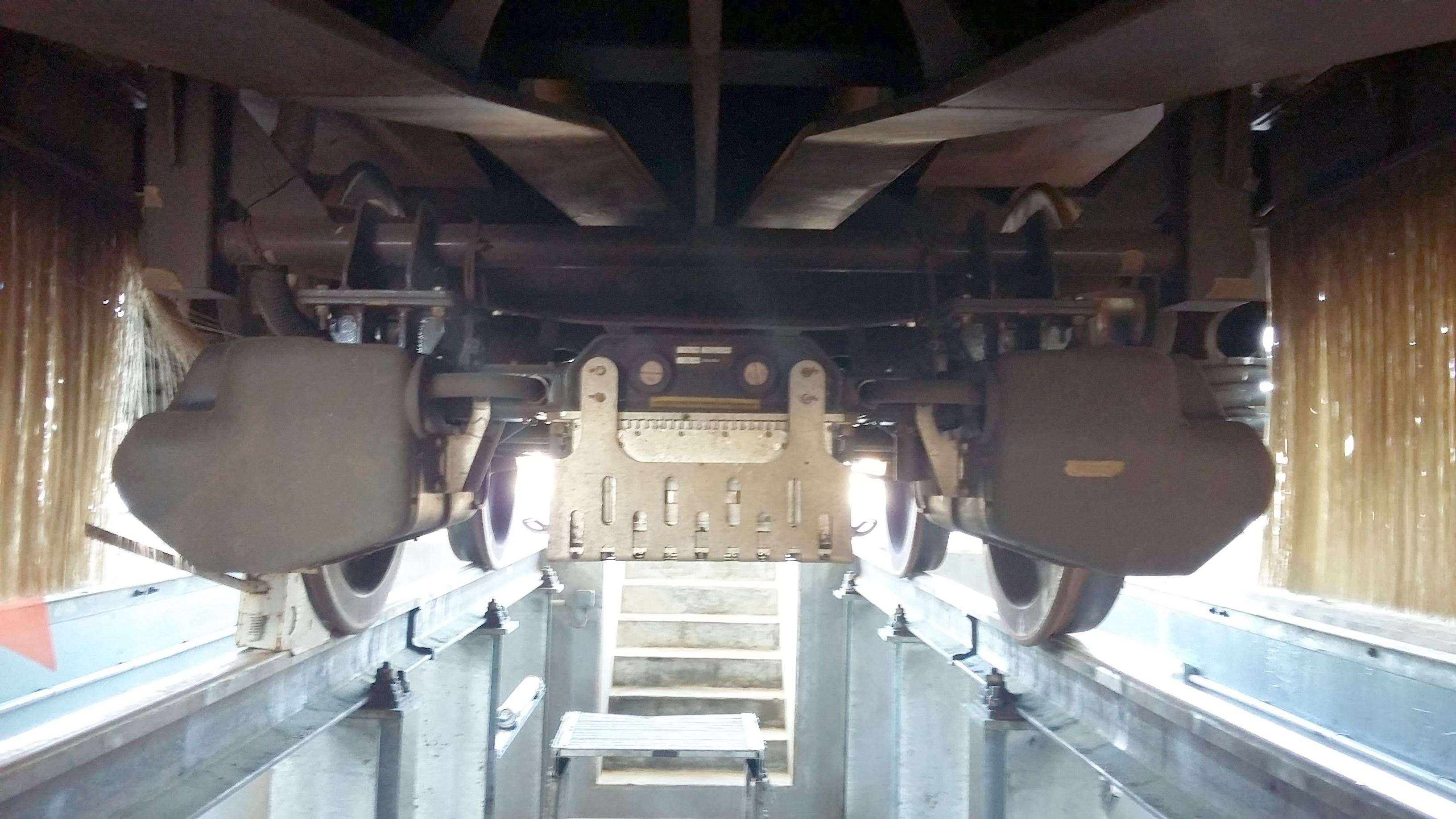 Mine de rien, le wagon fait 47 tonnes même s'il semble vide. En fait il est lesté avec des plaques d'acier invisbles derrières les haussettes.