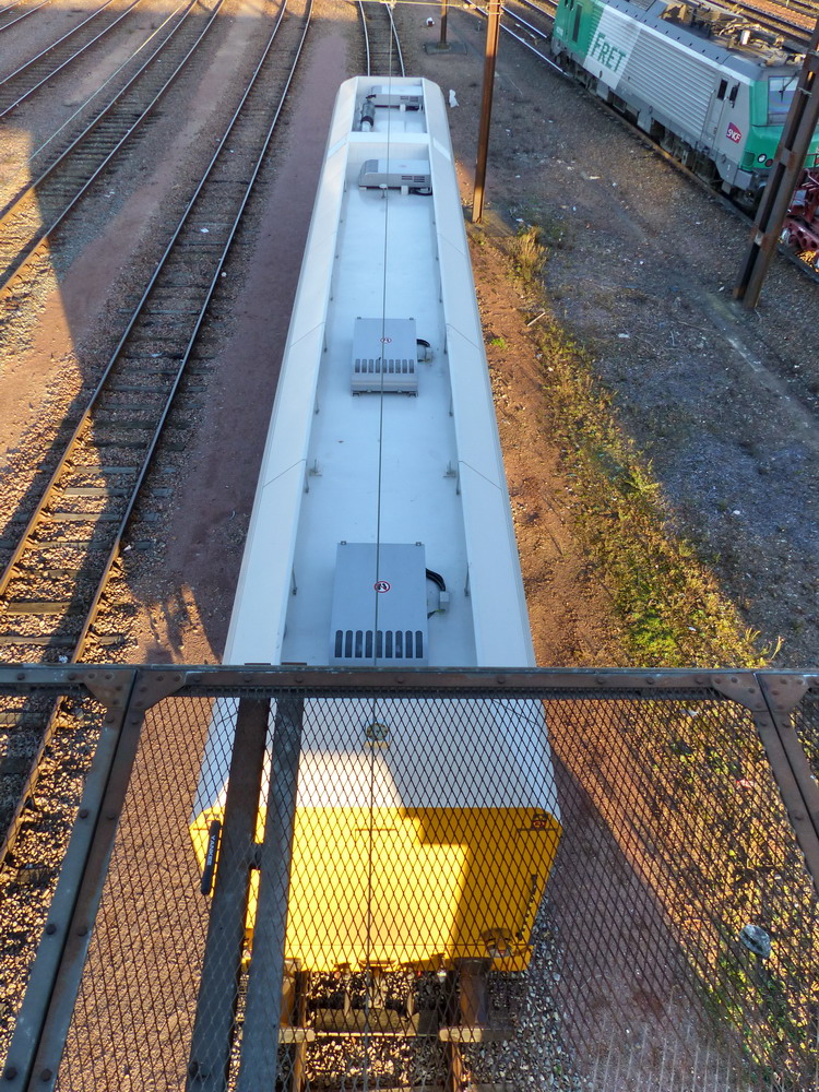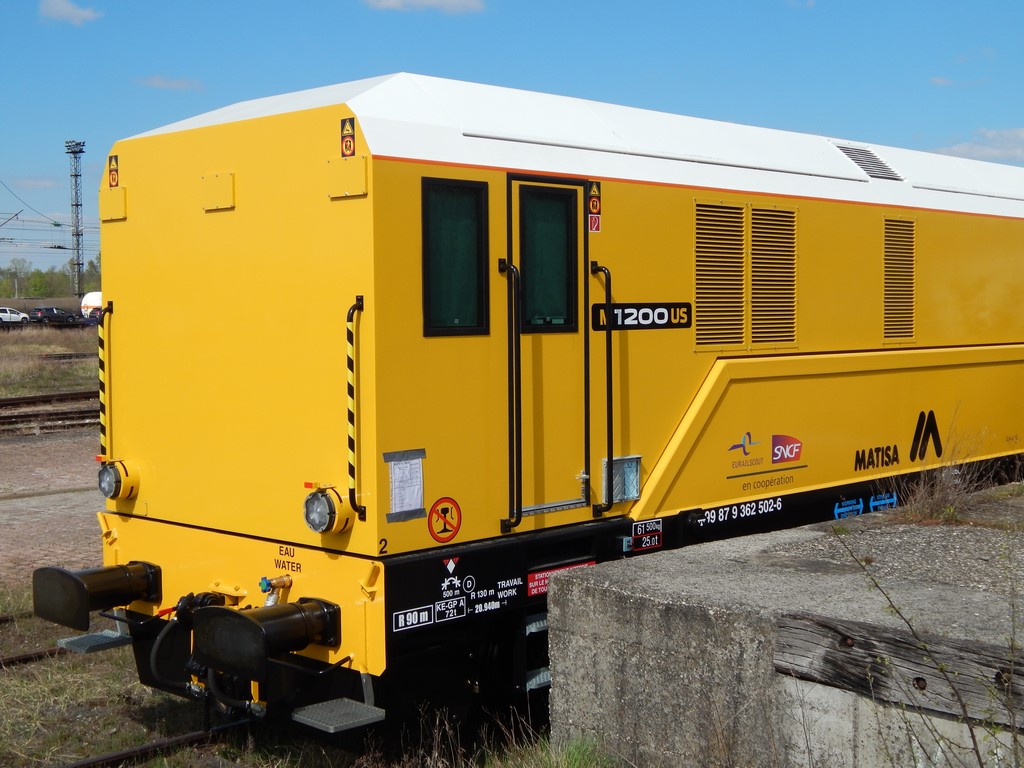 Voici le wagon de contrôle des rails par ultrasons de Matisa (2015) le M1200 US V7 - 99 87 9 362 502-6 Eurail Scout France - Ultra Sons 15 du longueur de 20,940 m