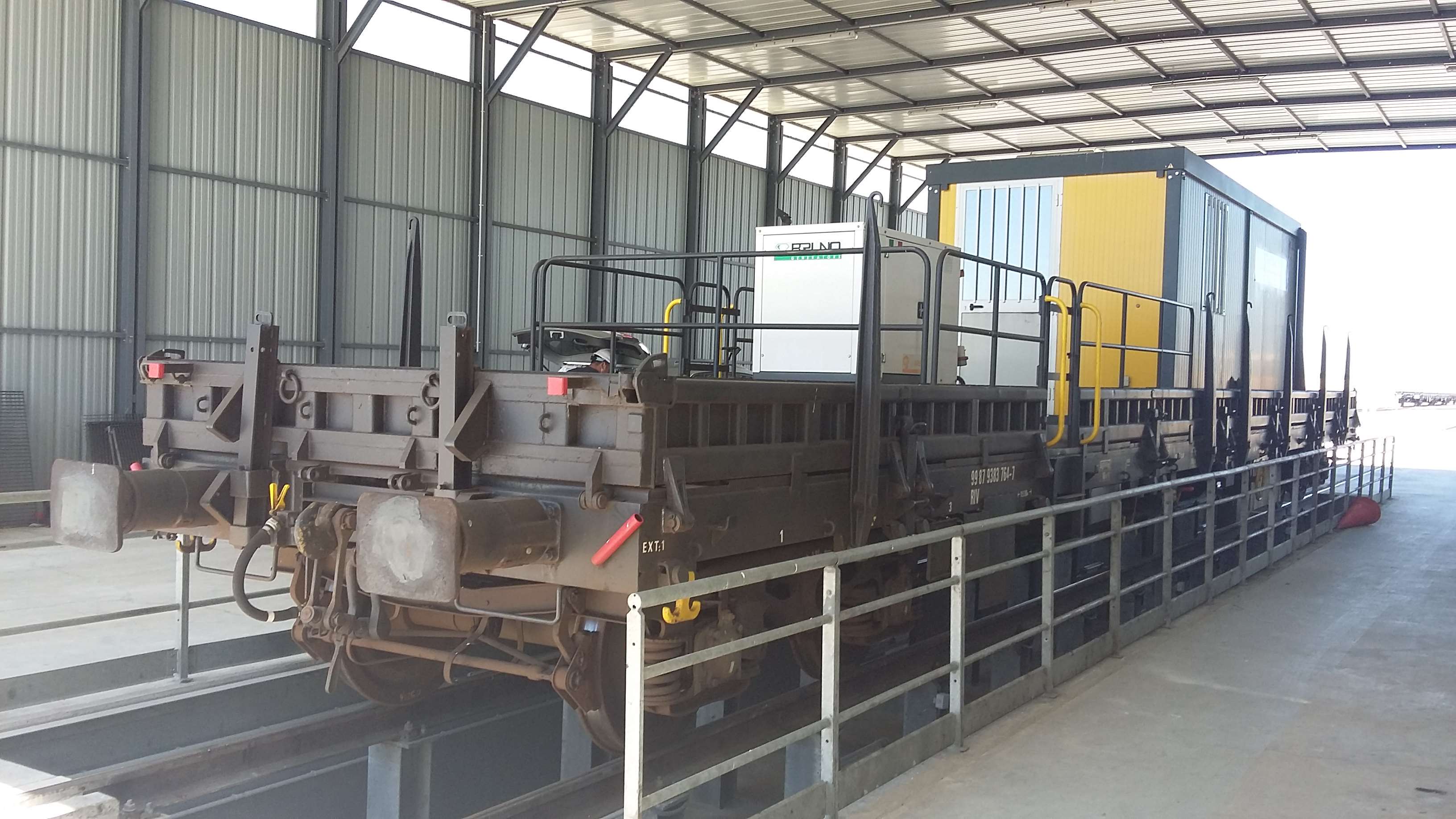 Mine de rien, le wagon fait 47 tonnes même s'il semble vide. En fait il est lesté avec des plaques d'acier invisbles derrières les haussettes.
