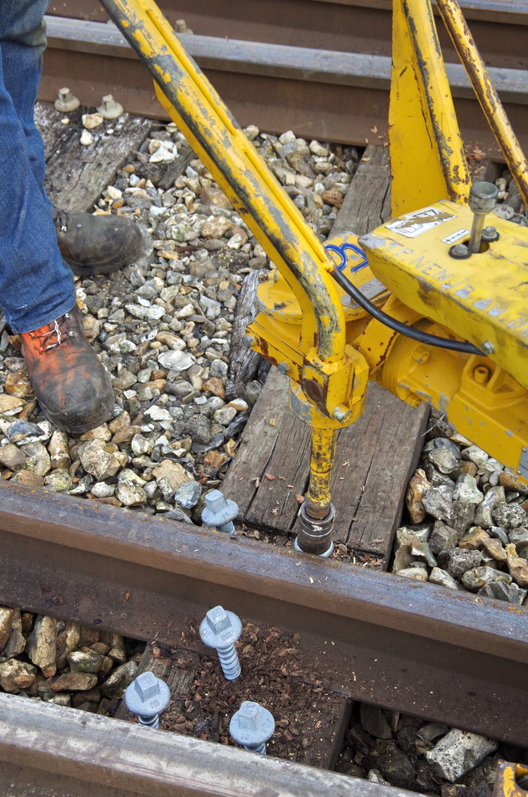 début des travaux avec le tirefonnage avec une Tirefonneuse Geismar Stumec
