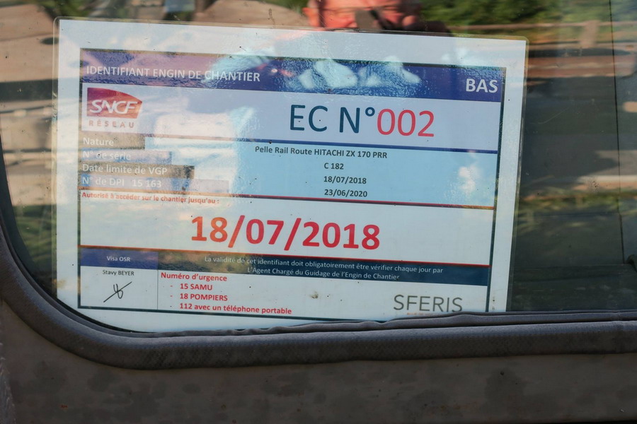 Pelle Rail route Hitachi D2R ZX 170 PRR série C182 n°JK6CGA04900020871 de Fornoni à Dambach-la-Ville le 28-06-2018