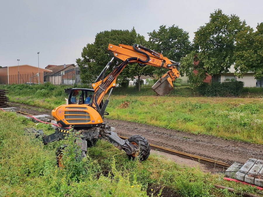 Compacteur pour stabiliser la basse de la nouvelle voie ainsi que le ballast au niveau de Dambach-la-Ville