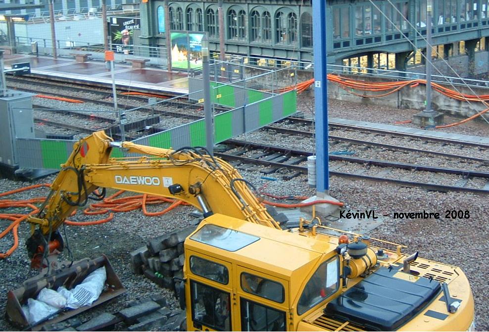 Tout ça pour dire que les travaux de voie sont en vue dans les semaines à venir, deux pelles à pneus rail-route (une case, une daewoo) sont actuellement sur la gare pour préparer le terrain de la connection avec le réseau éxistant.