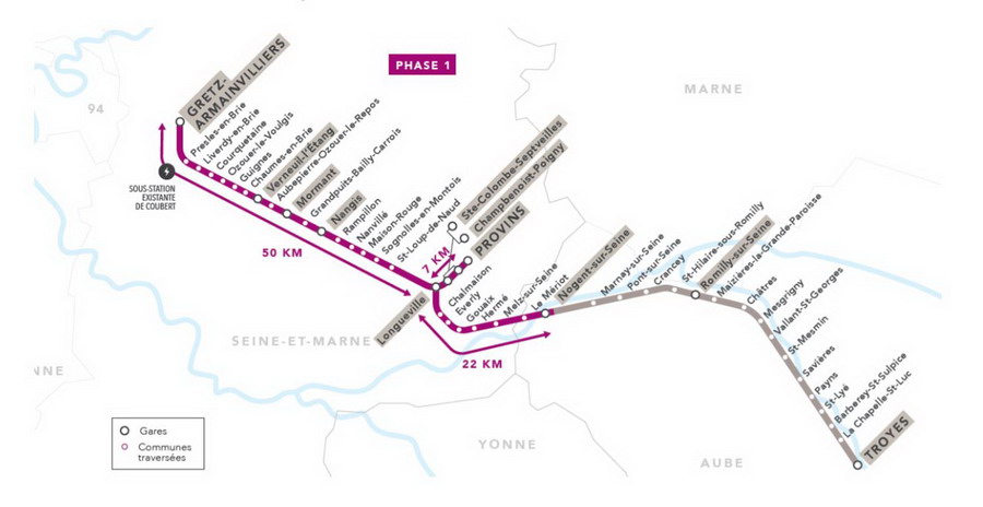 Sur 72 km de double voie de Gretz-Armainvilliers à Nogent-sur-Seine et sur 7 km de voie unique de Longueville à Provins, le projet