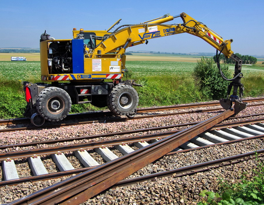 utilisation d'une Pelle rail route Vaiacar V704FR+ n°0610V7029 - Meccoli 2 (RR5) pour retirer les coupons de 18 m à Blangy-Tronville le 27-06-2018