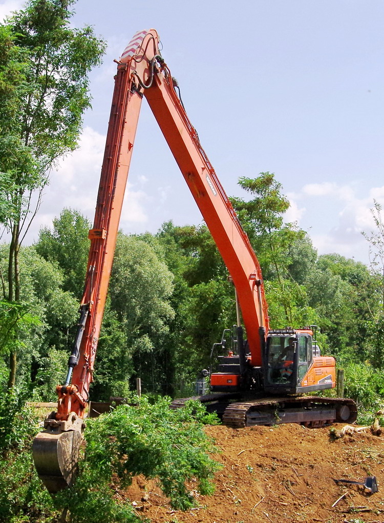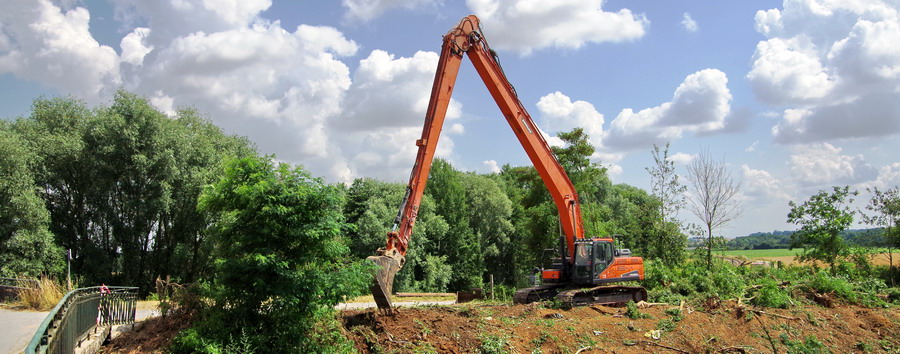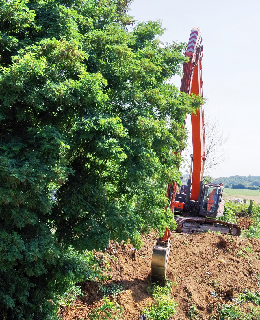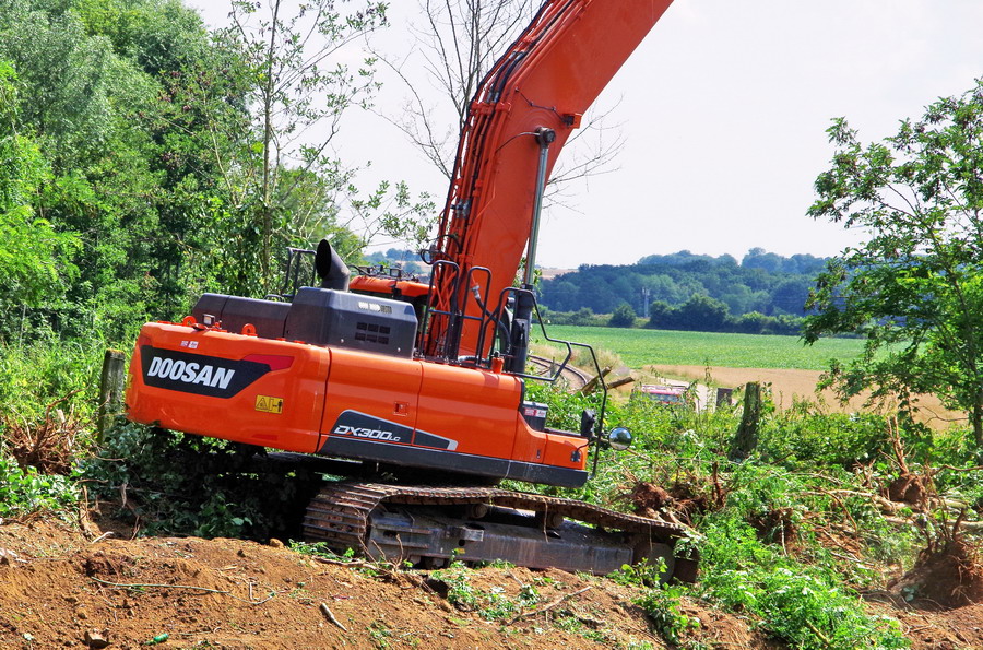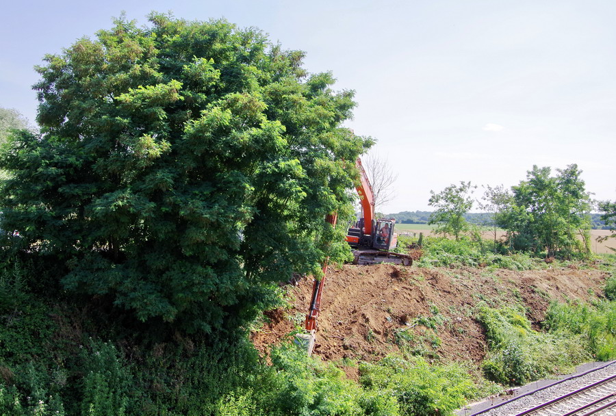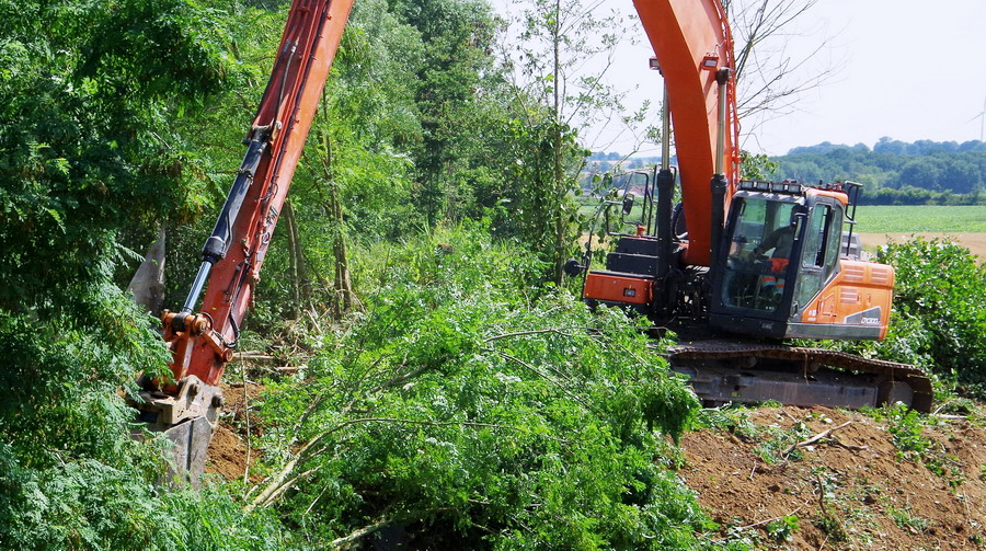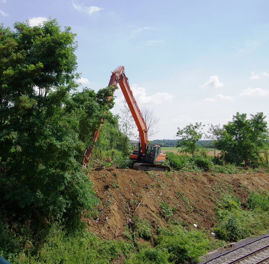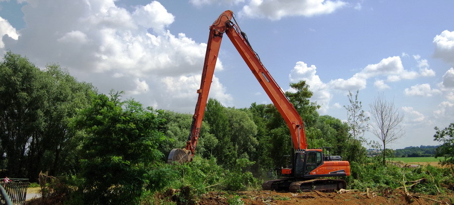 nettoyage des talus avec la DOOSAN Crawler Excavator DX300LC - 5 au niveau des Ponts de Bray à Jussy (02)
