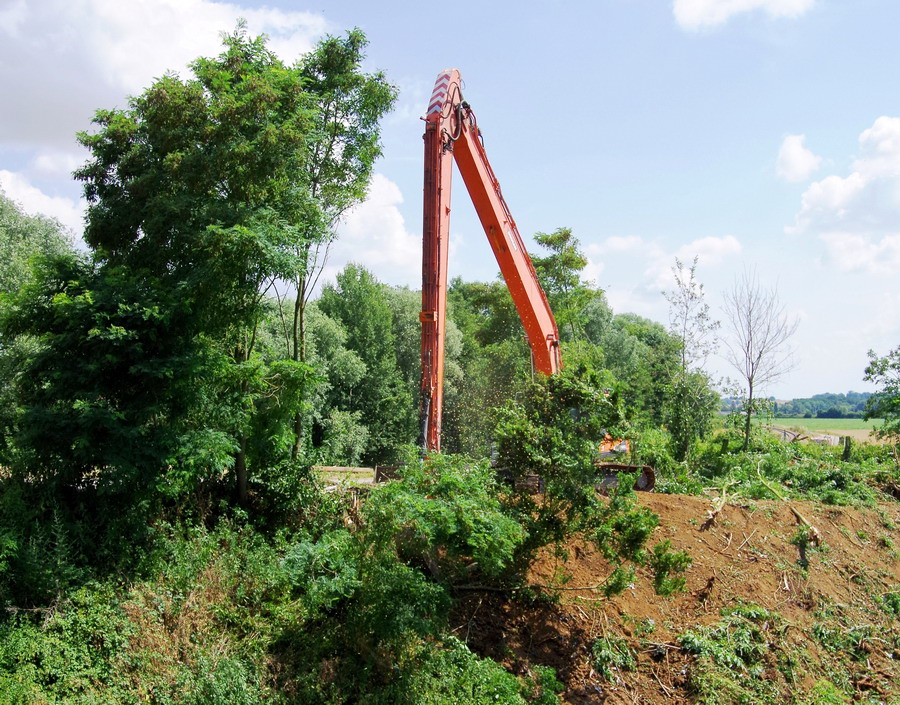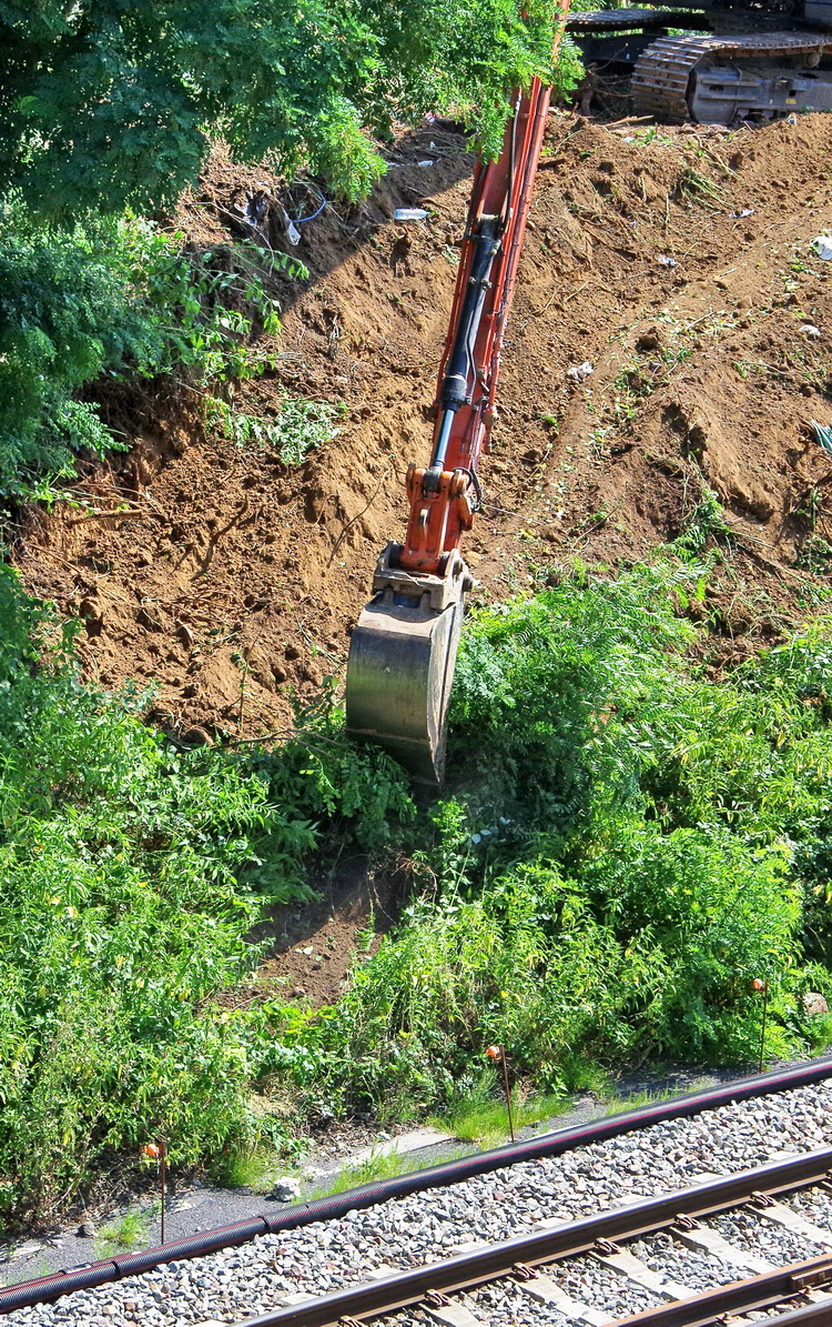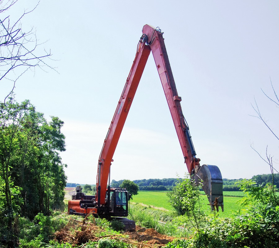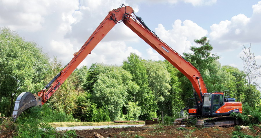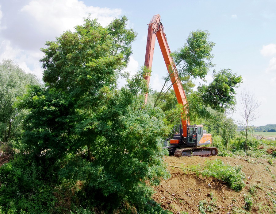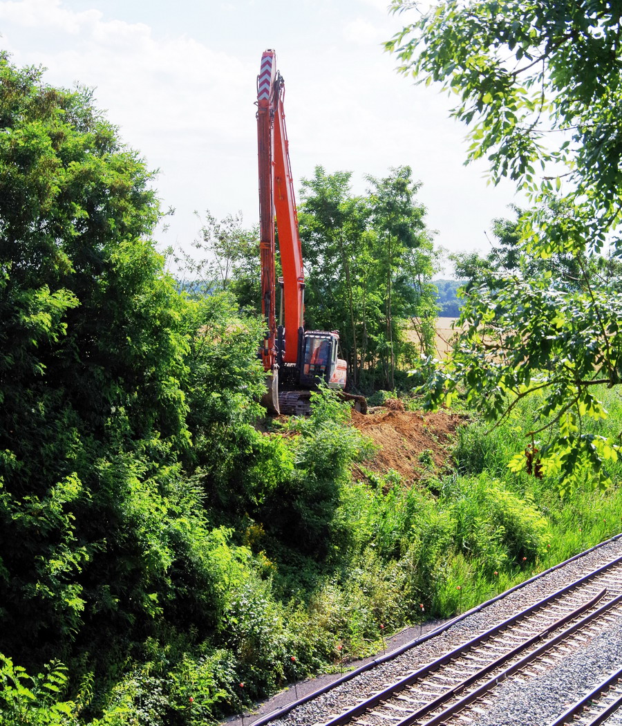 nettoyage des talus avec la DOOSAN Crawler Excavator DX300LC - 5 au niveau des Ponts de Bray à Jussy (02)