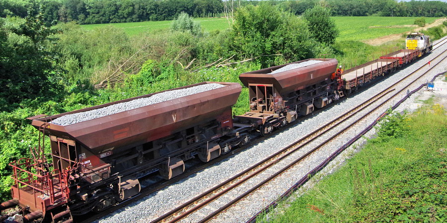 voici le passage du train n°F1F2 avec la rame de ramassage de fin de chantier avec