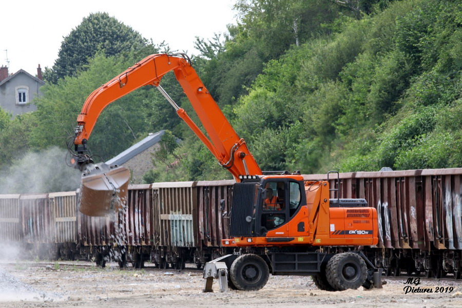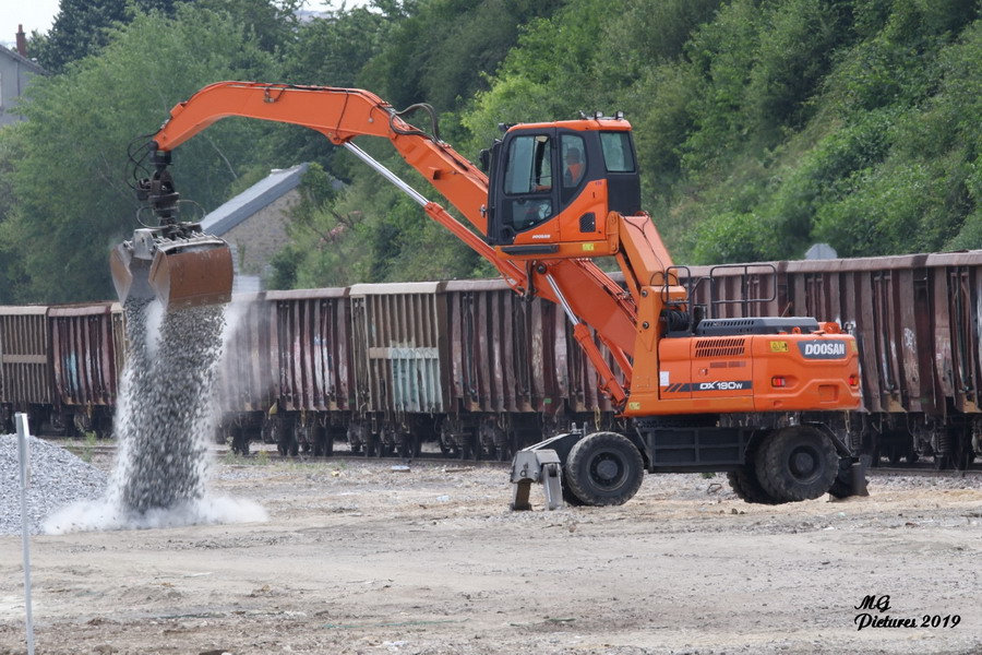 et maintenant une nouvelle journée avec le 02 juillet 2019 avec une pelle route DOOSAN DX190W pour le transfert du ballast