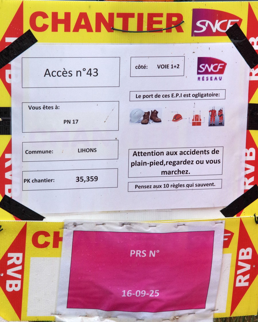 avec l'accès n°43 au PN n°17 à Lihons PK 35,359 côté voie 1 + 2 - PRS n°16-09-25