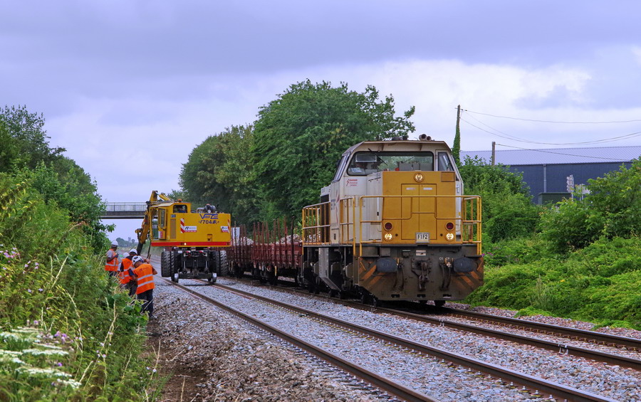 les travaux en gare de Marcelcave (80) PK 21 avec le train F1F2 et la G1206 BB- 5001497 - 92 87 0 061 497-9 - ETF