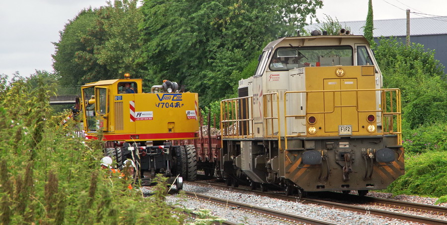 et du train n°F1F2 avec la rame de ramassage de fin de chantier sur le RVB avec la: