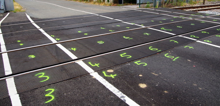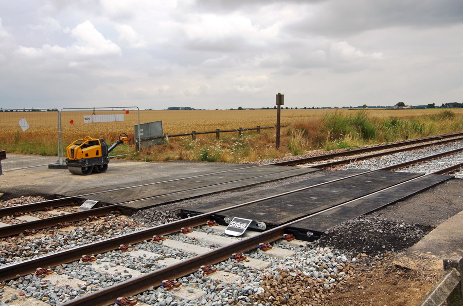 et maintenant quelques photos du mercredi 11 juillet 2018 au PN de la gare de Rosières-en-Santerre avec le nouveau marquage sur la voie 2