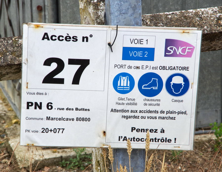 on se trouve maintenant à l'accès n°27 au PN n°6 rue des Buttes à Marcelcave (80) PK 20,077 pour la voie 2