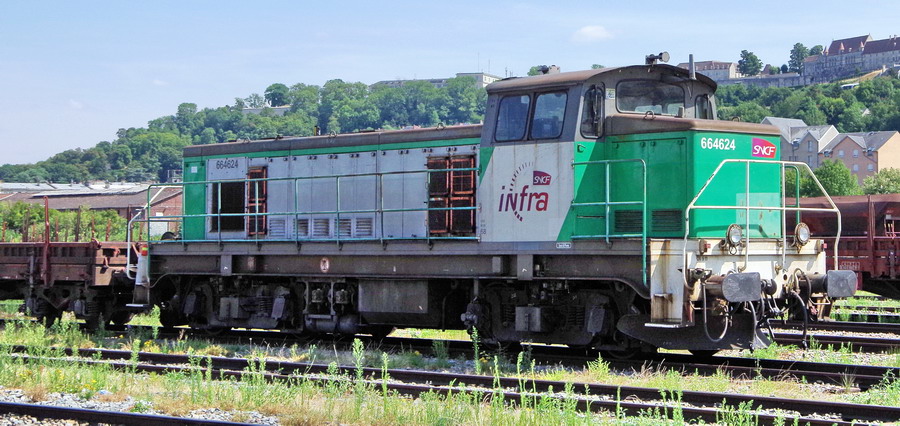 BB 64624 en livrée Fret SNCF avec logo Infra sur la base de travaux de la gare de Laon le 19-07-2018