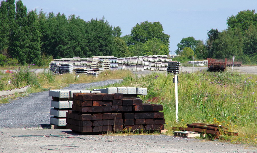 le stock de traverses sur la base de travaux de la gare de Laon le 19-07-2018