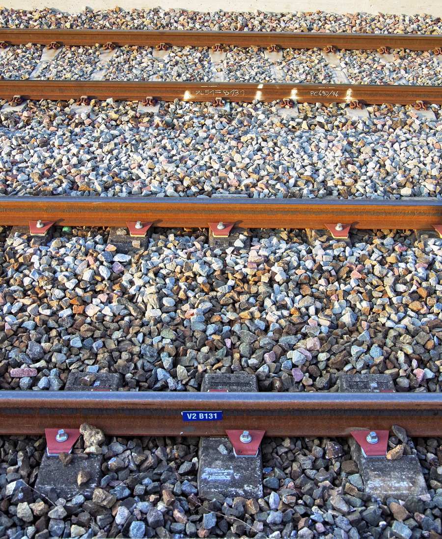 Toute voie ferrée nécessite des repères afin d’être établie, contrôlée et entretenue. À cet effet, il est historiquement fait usage de bornage par piquets de courbe. Mais ce système, difficile et coûteux à maintenir, pâtit aujourd’hui de sérieuses carences. Le repérage des points caractéristiques des éléments du tracé sur lignes classiques est devenu malaisé en France. Cette réalité justifie donc, à l’occasion de travaux de renouvellement, le déploiement d’une nouvelle solution de repérage des éléments géographiques des voies. La nouvelle approche repose en partie sur des plaques de repère longitudinal, collées sur le rail, généralement à l’extérieur de la file extérieure de la voie. Cette approche a les mêmes fonctionnalités que la technique précédente. Mais elle l’enrichit par un repérage des éléments géographiques requis par le bourrage mécanique lourd, un repérage général en alignement ainsi que vis-à-vis des contraintes de gabarit. Elle permet aussi le géoréférencement de la position nominale de certains points, ce qui autorise de détecter et de corriger d’éventuels déplacements de la voie. Enfin, elle doit être accompagnée par la mise en place d’une base de données nationale, à la disposition des mainteneurs. Le nouveau système recourt à des plaquettes en plastique dur qui, en fonction du type de repérage, sont de couleurs différentes. Sont ainsi répertoriés : les points caractéristiques du tracé (indications blanches sur fond vert), les éléments nécessaires au travail (blanches/rouge), de repérage général (blanches/noir), les points nécessaires au respect des particularités de gabarit (blanches/ bleu). Les inscriptions y figurant renseignent (désormais) sur le numéro de la voie, le bornage décamétrique le cas échéant et un point à considérer. Une même plaquette peut informer, en plus de la voie, sur des repères différents (comme un repère décamétrique et un élément nécessaire au travail sur une zone d’obstacles en bleu).