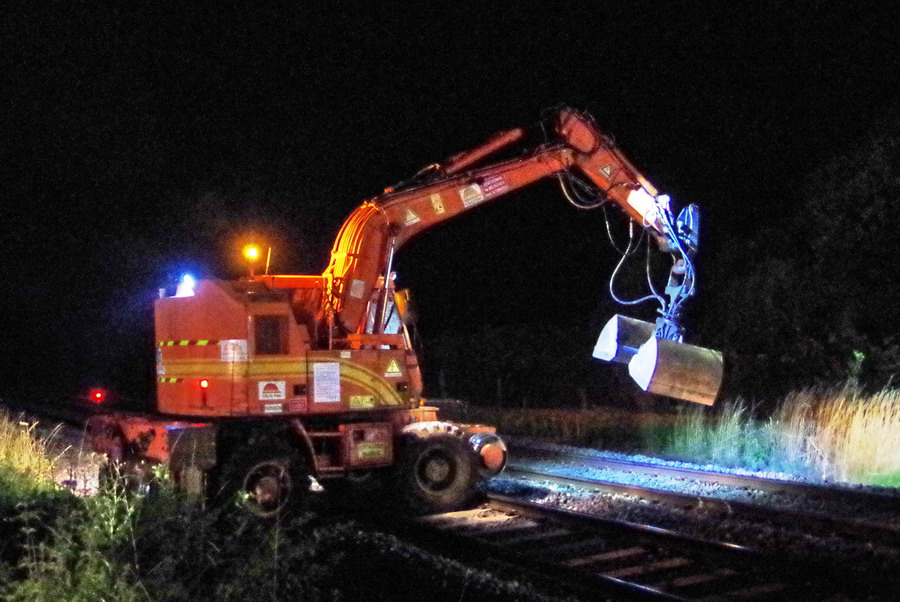 la Pelle Rail route UNAC 22 TRR UP2 n°EY200116 - Colas Rail - UNAC 3 - D1003087 pour les travaux nuit du 24 au 25 juillet 2018 au niveau des Ponts de Bray à Jussy (02)