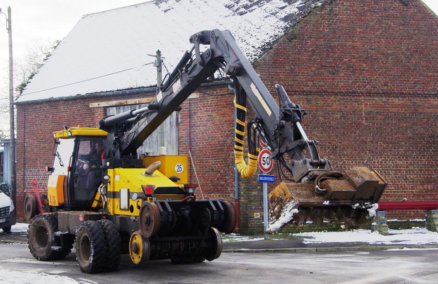 PN n°37 d'Eppeville (80) pour une séance de débroussaillage avec enrayage de l'engin U5 sur la voie le 08-02-2018
