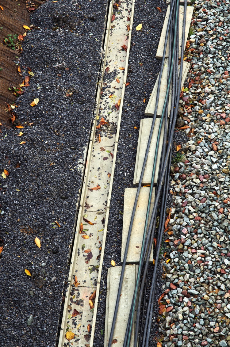 Est-tu sûr qu'il s'agisse de caniveaux pour l'écoulement d'eau ?. Je pencherais pour des caniveaux G.M. (grand modèle) pour le passage de câbles, ce qui expliquerai le déroulage et enfouissement d'un C.D.T.E. (câble de terre enterré). :?: :?: