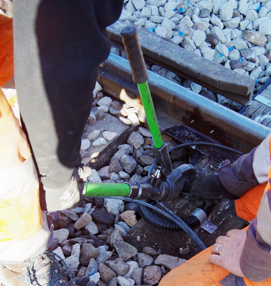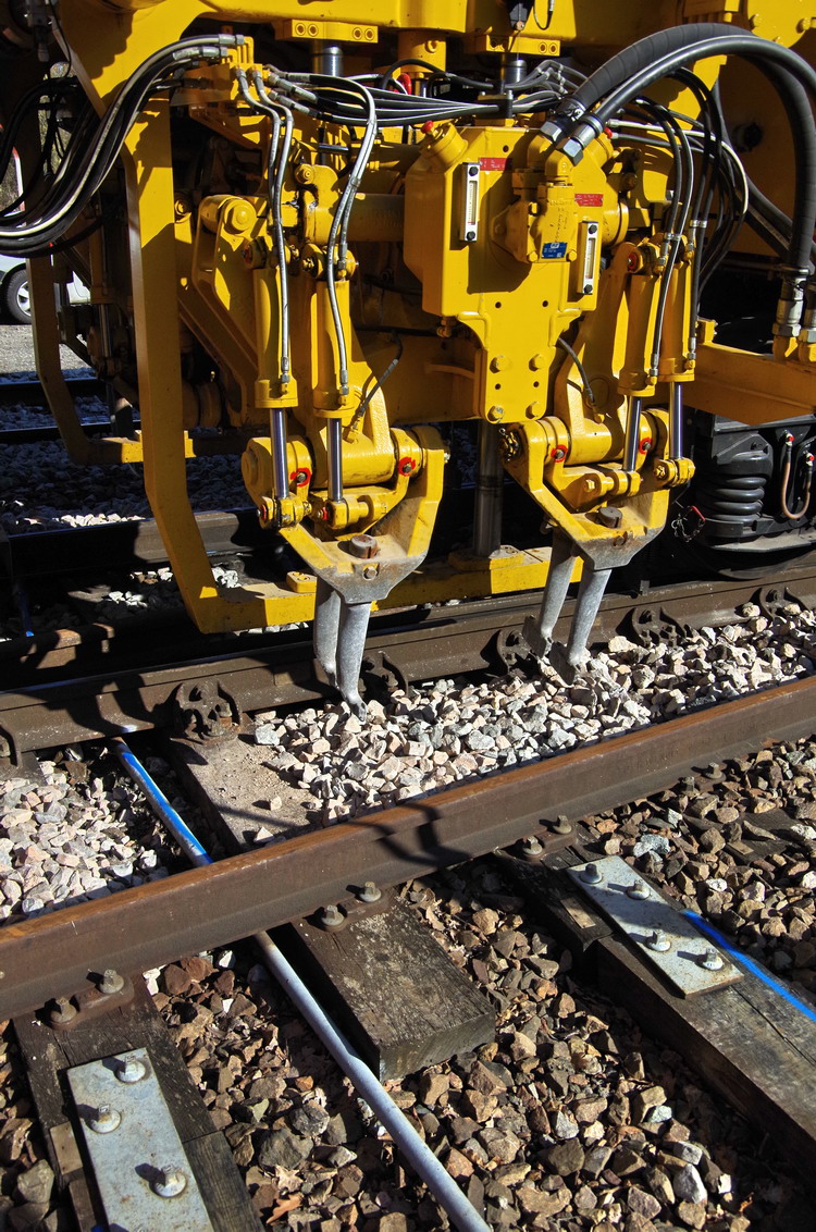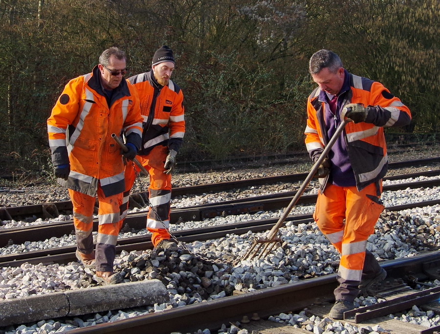 travail avec une fourche à ballast (Travaux de ballastage, dégarnissage, etc…)