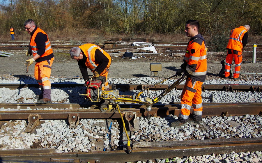 travail avec une fourche à ballast gare de Ham le 22-02-2019