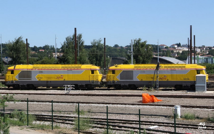 les BB 667408 et BB 667608 sur la base de travaux du Puy-Imbert le 10-07-2019