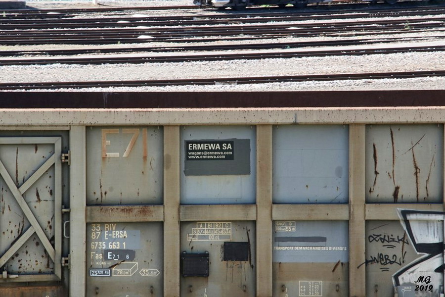 wagon tombereaux location Ermewa 33 87 6735 663-1 Fas E71 6 sur la base de travaux du Puy-Imbert le 10-07-2019