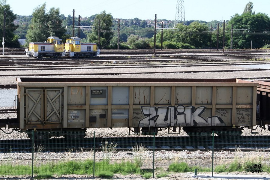wagon tombereaux de type E71 6 location Ermewa sur la base de travaux du Puy-Imbert le 10-07-2019