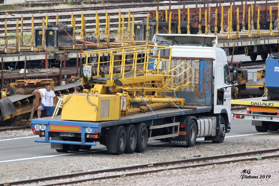 arrivée d'un camion grue Liebherr de 70 T de l'entreprise Teil pour le le P95 d'ETF au Puy-Imbert le 11 juillet 2019