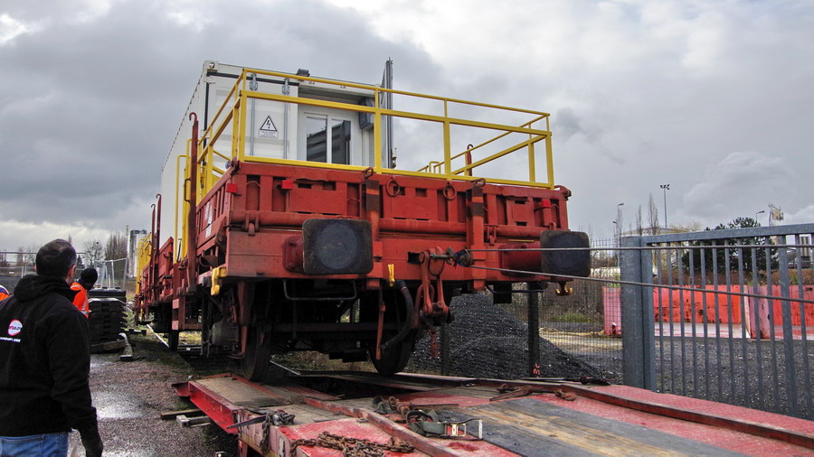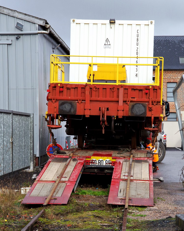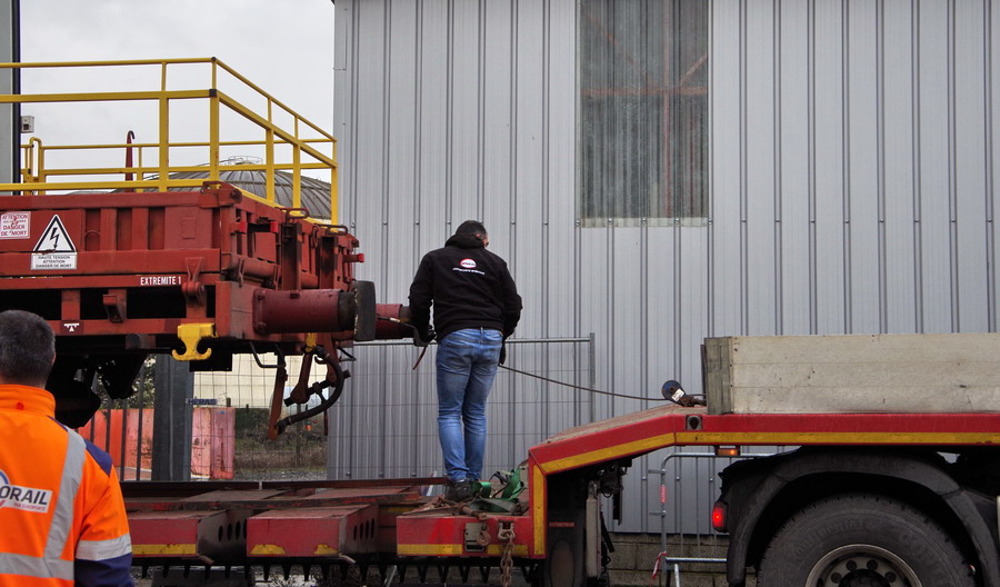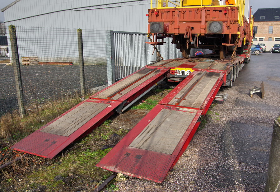 arrivée de St Nazaire par camion du wagon pour la gare d'Origny-Sainte-Benoîte le 09 janvier 2019