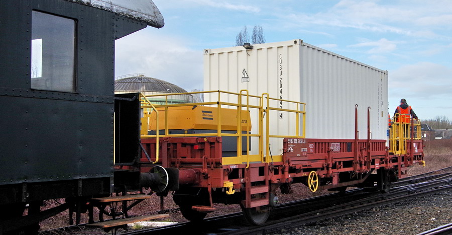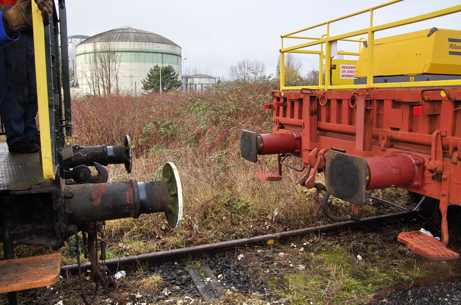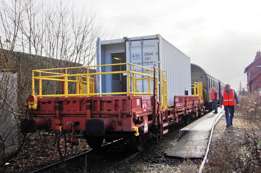 préparation pour le déchargement du wagon en gare d'Origny-Sainte-Benoîte le 09 janvier 2019