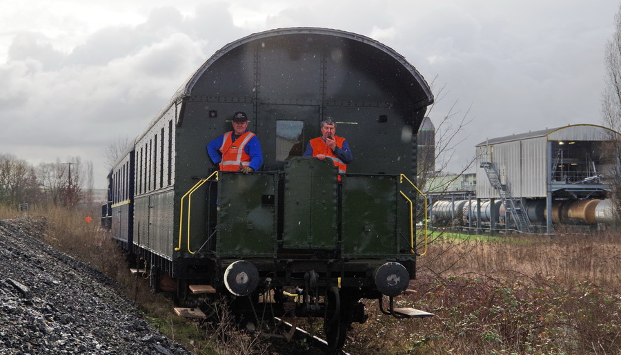 refoulement de la rame du train touristique CFTV pour accrocher le wagon en gare d'Origny-Sainte-Benoîte le 09 janvier 2019