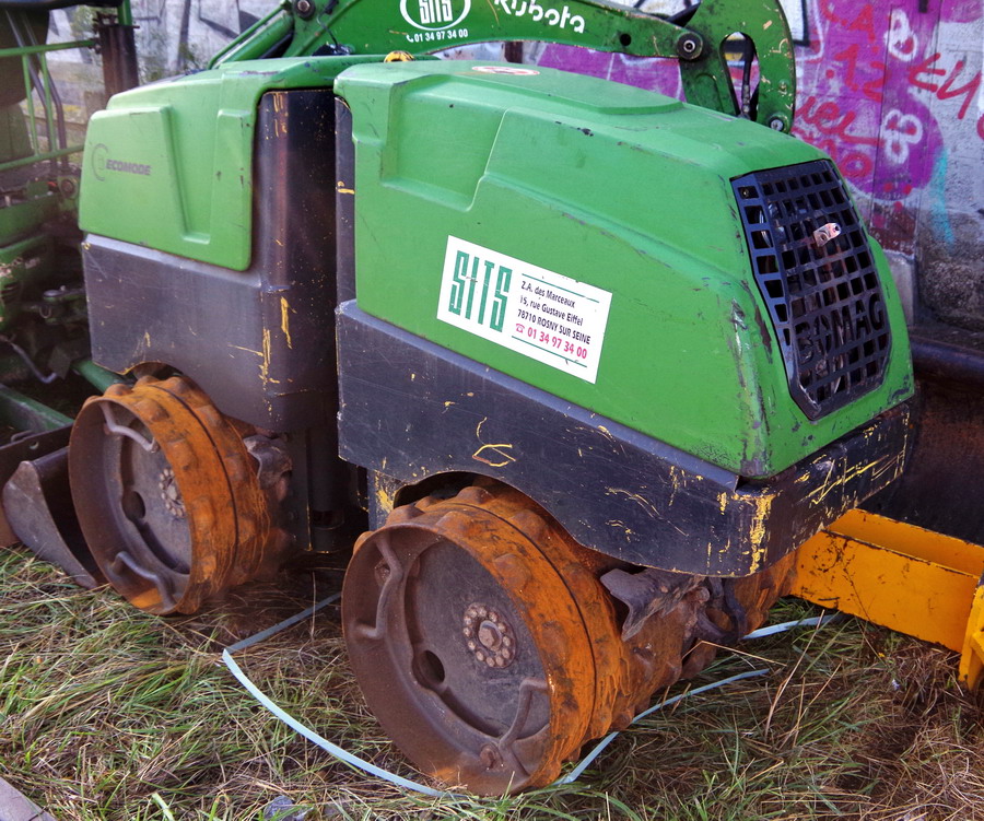 BOMAG compacteur de tranchées multifonction radio commandé et articulé en gare du Tréport-Mers-les-Bains le 10-09-2019