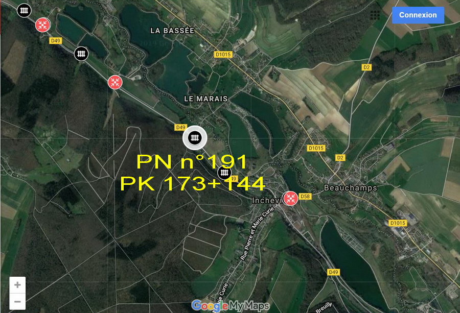 situation du PN n°191 à Incheville (76) PK 173+144 entrée chantier PRS n°37