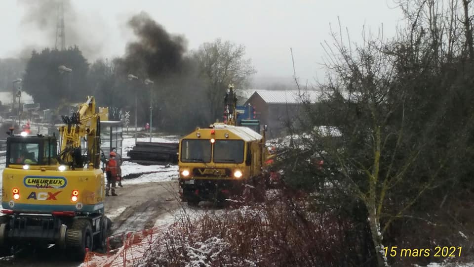 Le 10 mars , un premier train de travaux pour la ligne des Horlogers arrive de Dijon, il passe Franois.