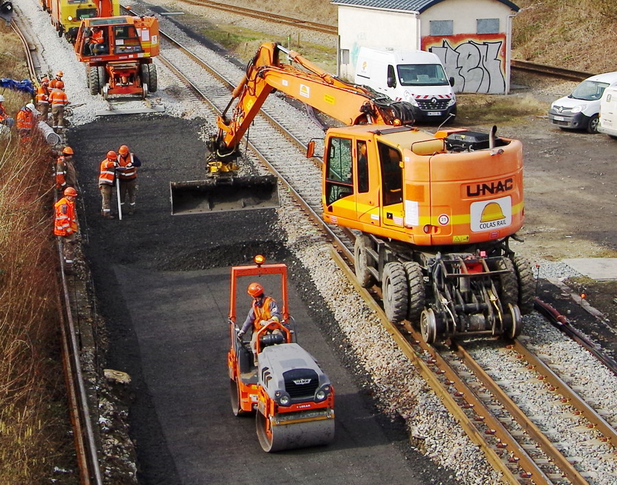 mise en place d'une sous couche géocomposite drainante à la bif de Jussy le 14-02-2018 et UNAC 22 TRR Colas Rail D 100 2479